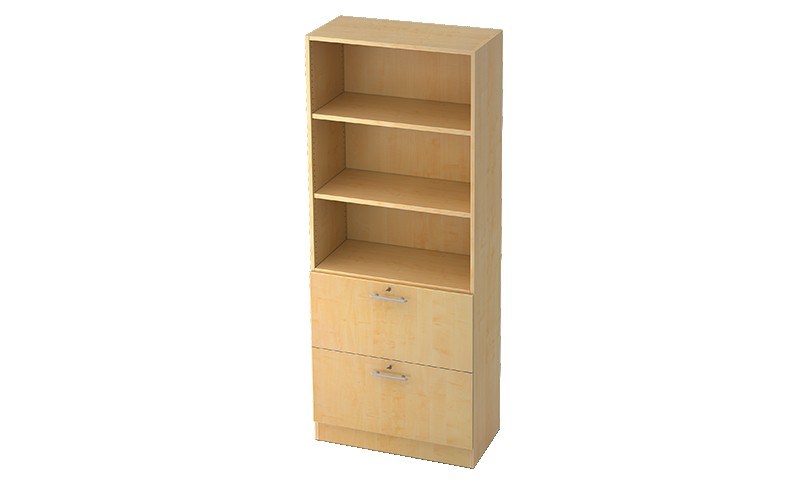 melaminharzbeschichtete Platten nach DIN 68765, Emissionsklasse E1, Vorderkante mit 2 mm ABS-Kanten, gerundet. Seiten, Platte und Boden 19 mm stark, Zwischenböden und Fachböden bei Breite 406 und 800 mm = 19 mm stark, bei Breite 1000 mm = 22 mm stark.