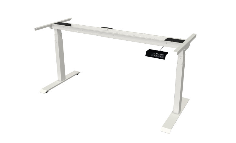 Massives, 2-motoriges T-Fuß Gestell mit Stellfüßen wahlsweise in Alusilber, weiß oder Anthrazit.
