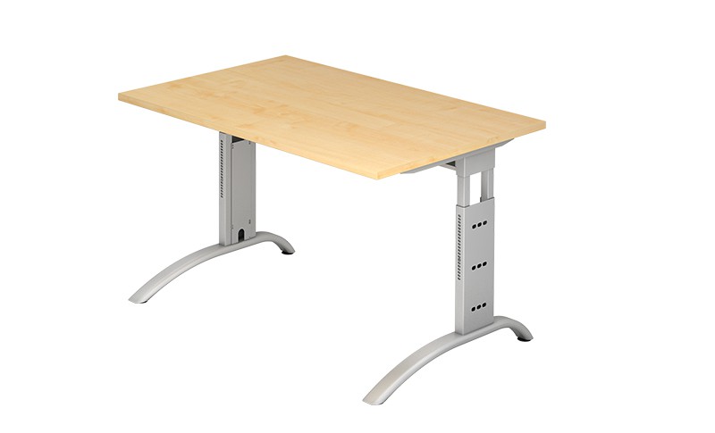 25 mm starke, melaminharzbeschichtete, kratzfeste Platte nach DIN 68765, mit 2 mm Kunststoffkante, gerundet. Verkettbar mit allen 80 cm tiefen Schreibtischen.