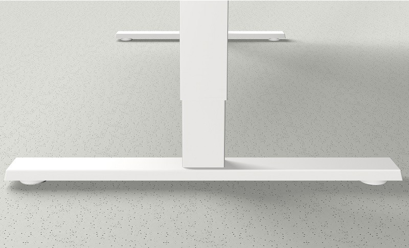 Massives T-Fuß Gestell mit Stellfüßen, in Alusilber oder Weiß. Elektrische Höhenverstellung bis 120 cm. Hubgeschwindigkeit: ca. 36 mm/s. Hoch belastbar (100 kg statisch und 80 kg dynamisch).