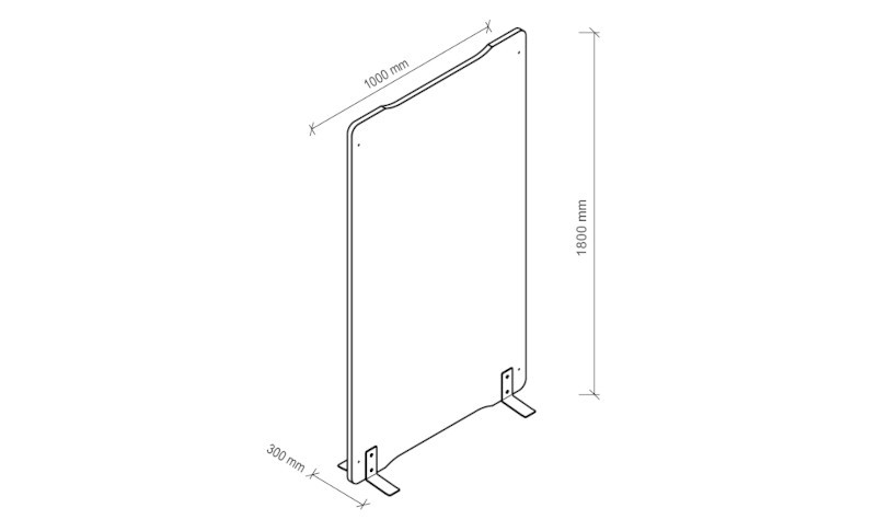 Rahmenlose Konstruktion mit Schallschutzflies, grau meliert in Filzoptik (25mm dick). Metallfüße in Silber, freistehend und flexibel einsetzbar.
