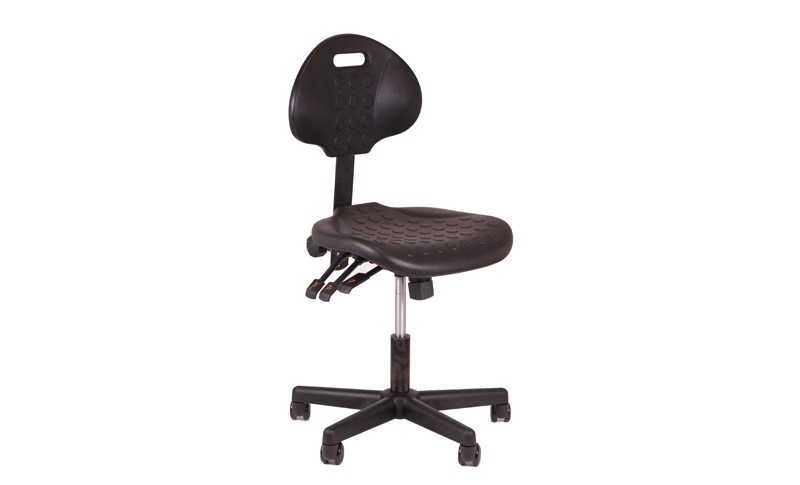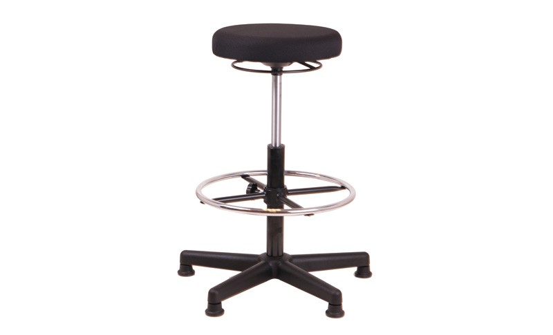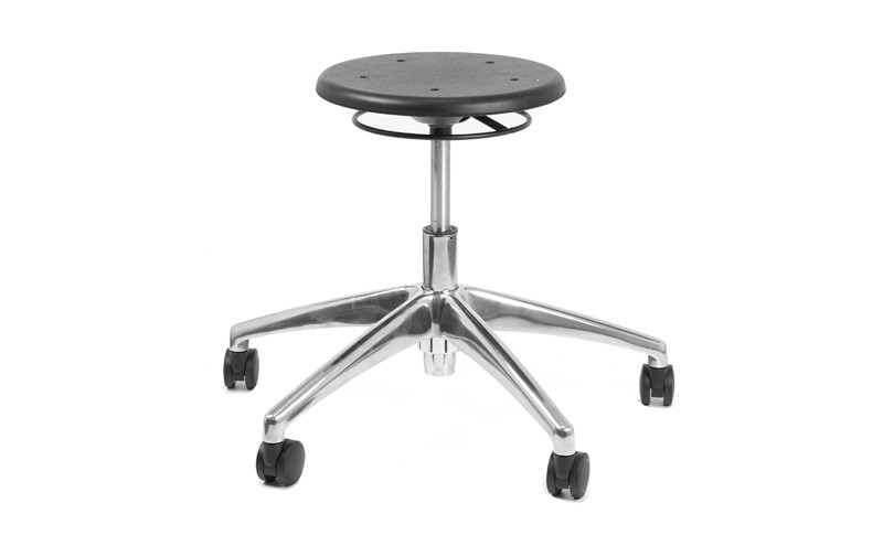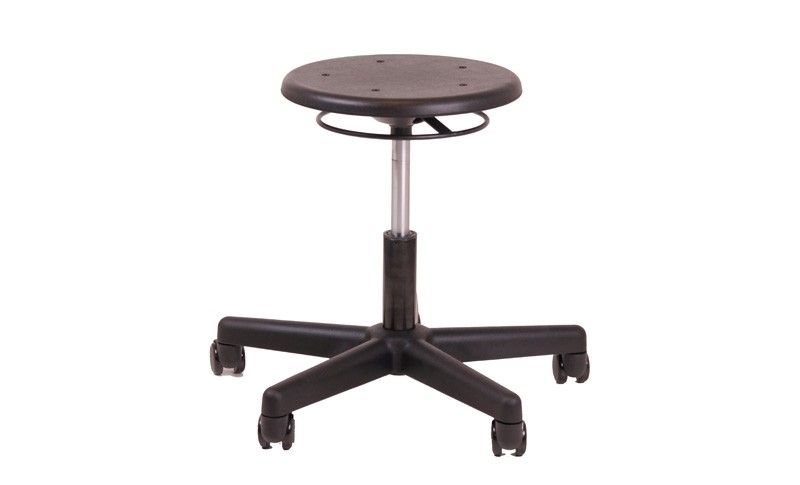 Arbeits-Hocker mit abwaschbarem Sitz aus strapazierfähigem Polyurethanschaum.